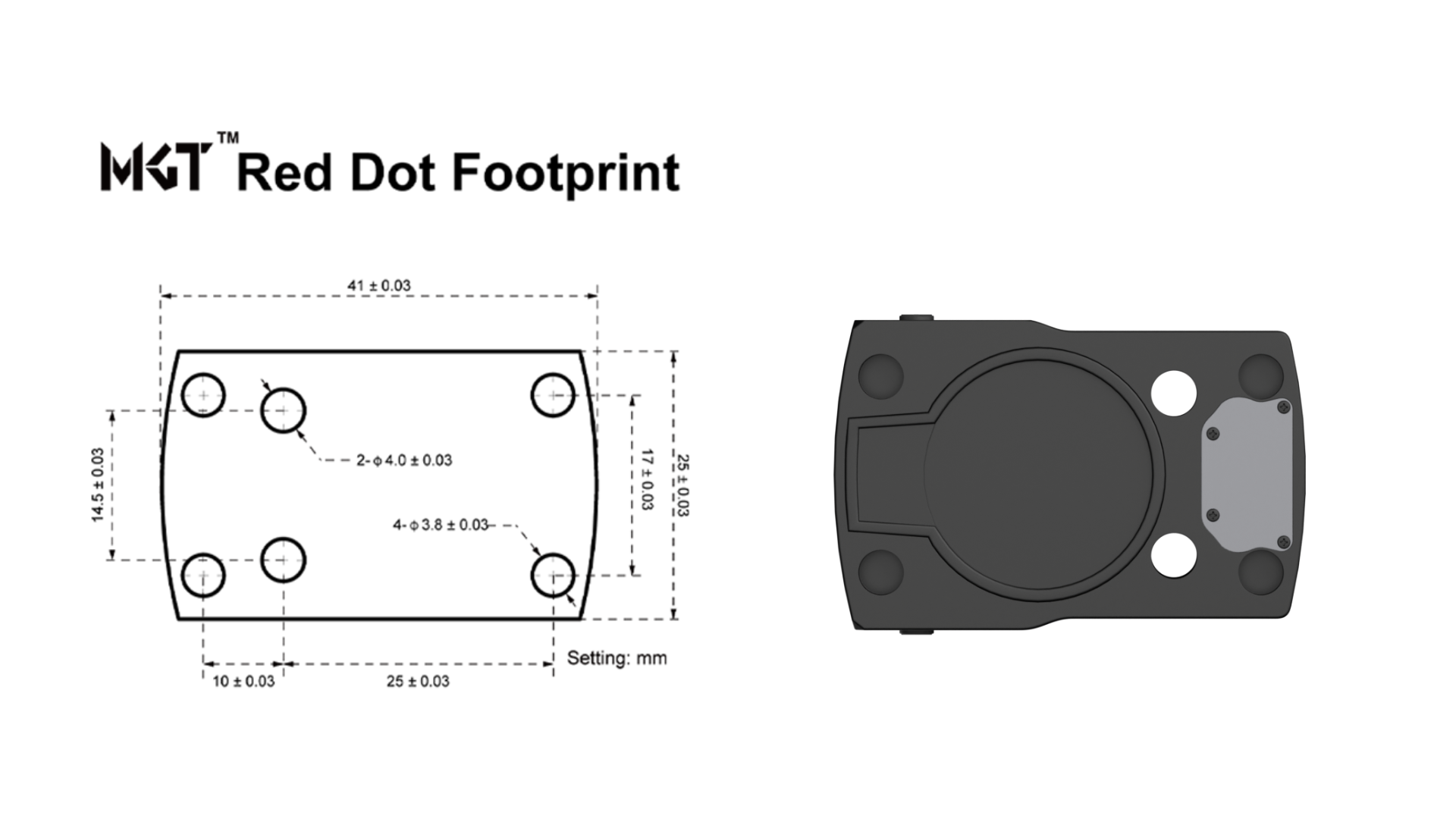 Özellik: TEK footprint’e benzer ama daha kompakt boyutta. Genellikle mini kırmızı noktalar için kullanılır. MGT en küçük footprint’dir.