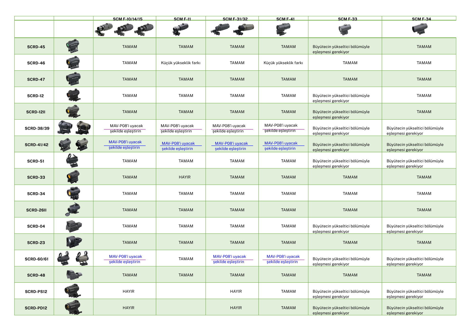 Vector Optics Magnifier ve Red Dot Uyum Tablosu