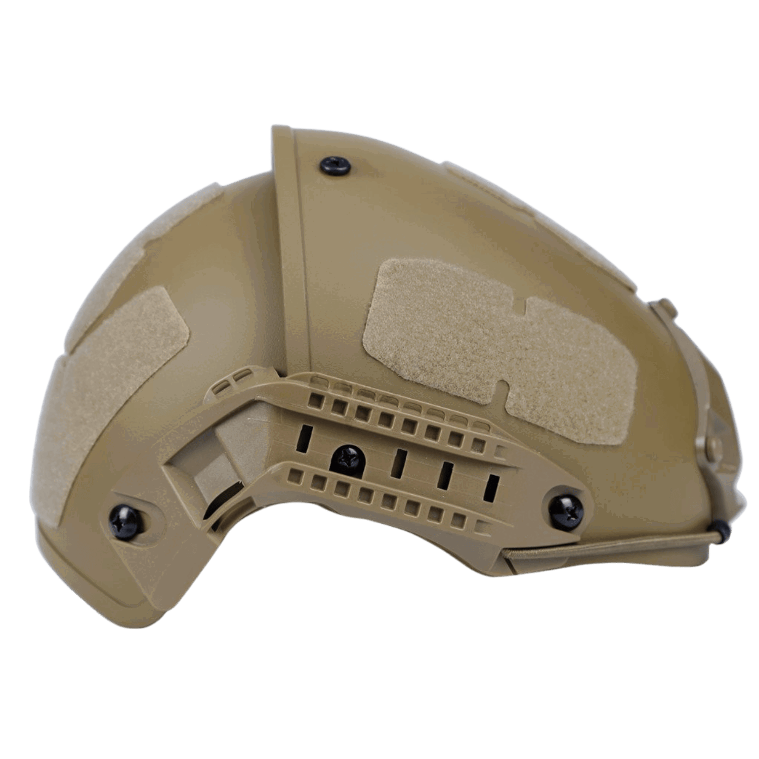 Tan rengiyle taktik ekipmanlarla uyumlu bir görünüm sunan DELTA Airsoft KASK Helmet Fast Type Air Flow, airsoft ekipmanlarını tamamlamak isteyen kullanıcılar için işlevsel ve estetik bir tamamlayıcıdır.