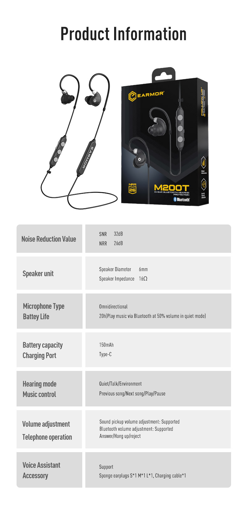 - 1 adet EARMOR M200T kablosuz Bluetooth kulaklık
