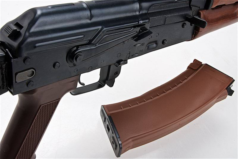 Gerçek ahşap el kundağı, polimer dokulu kabza ve yana katlanır dipçik, hem ergonomiyi hem de sahadaki kompakt kullanım avantajını bir araya getirir. EL Airsoft, birçok AK modelinde olduğu gibi bu modelde de gerçek üretim tekniklerini airsoft platformuna uyarlamış, yüksek dayanım ve gerçekçilik seviyesini artırmıştır.