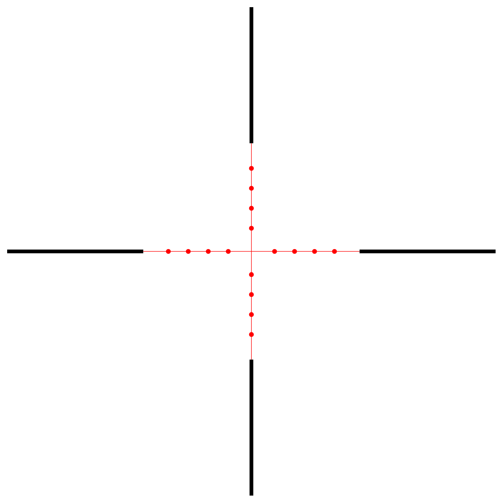 Mil Dot IR artıkıl, 10x büyütmede hassas mil aralığı sunar ve her yönde 4 Mil Dot referans noktası ile daha kontrollü düzeltme yapılmasına yardımcı olur.