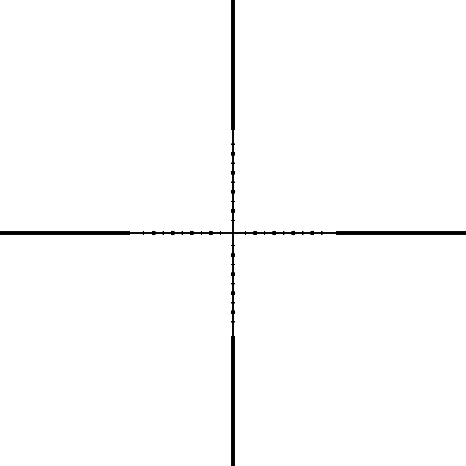 Yarım Mil Dot artıkıl, 10x büyütmede hassas kullanım sunacak şekilde tasarlanmıştır.