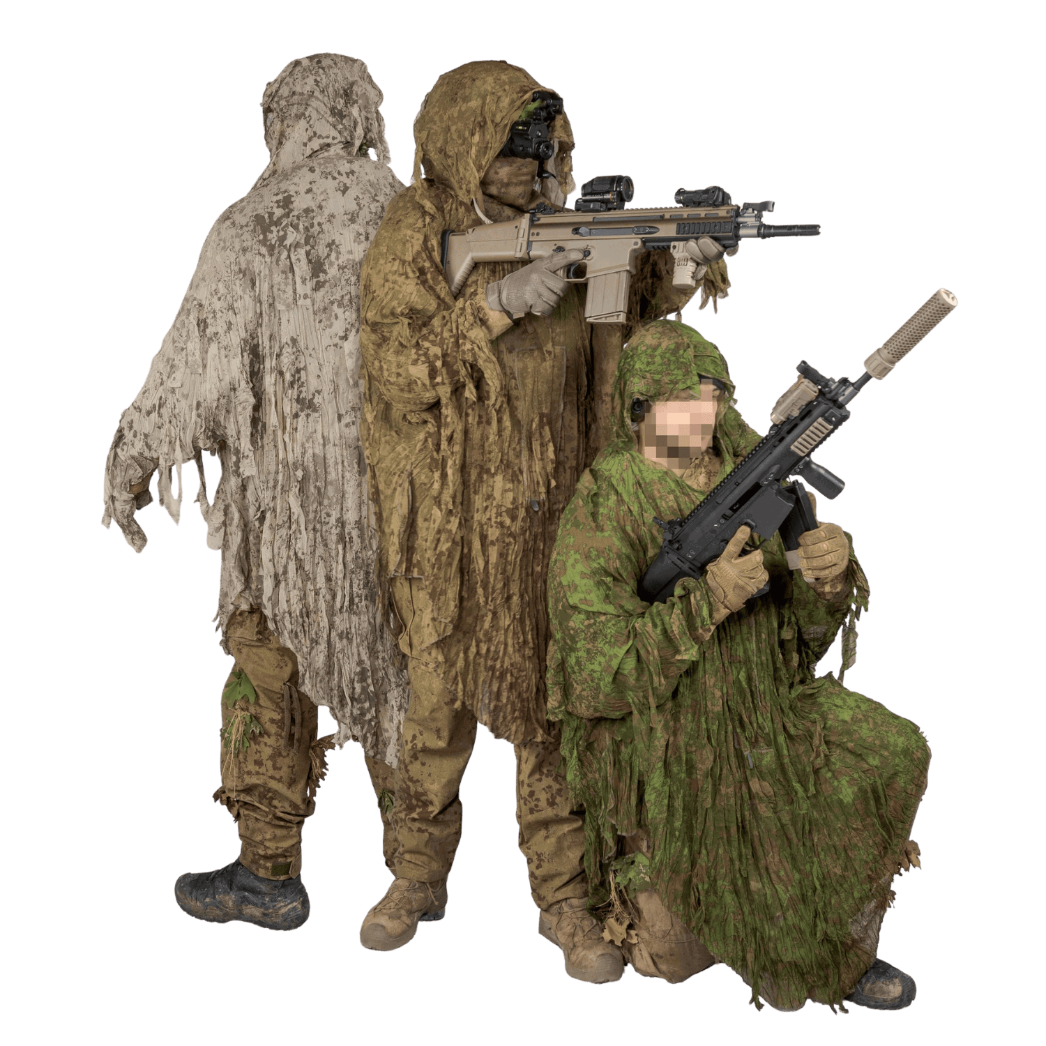 KMCS Ultra Hafif Ghillie Takımı; keskin nişancı pozisyonları, gözlem görevleri, airsoft ve doğa ortamında gizlenme gerektiren kullanım senaryoları için geliştirilmiş kompakt bir kamuflaj ekipmanıdır.