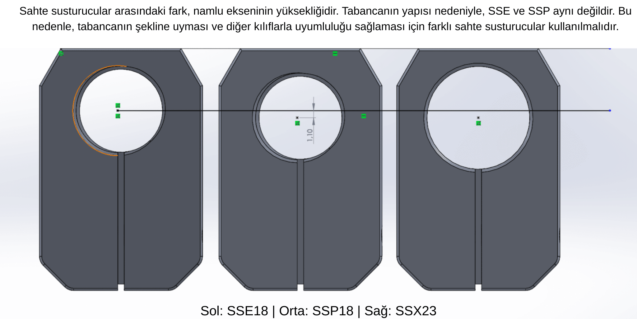 Bu sahte susturucu; SSP18 / SSE18 kılıfları ve SSX23 kılıfı ile %100 uyumludur. Takılı haldeyken bile kılıfa sorunsuz şekilde yerleştirilebilir.