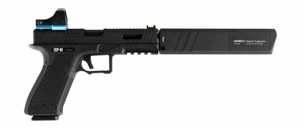Novritsch SSP18 Modular Susturucu V2, airsoft tabancalar için özel olarak geliştirilmiş, holster uyumluluğunu bozmadan maksimum esneklik sunan sahte susturucudur. Özel formu sayesinde, susturucu takılıyken dahi tüm Novritsch tabancalar kılıfla taşınabilir.