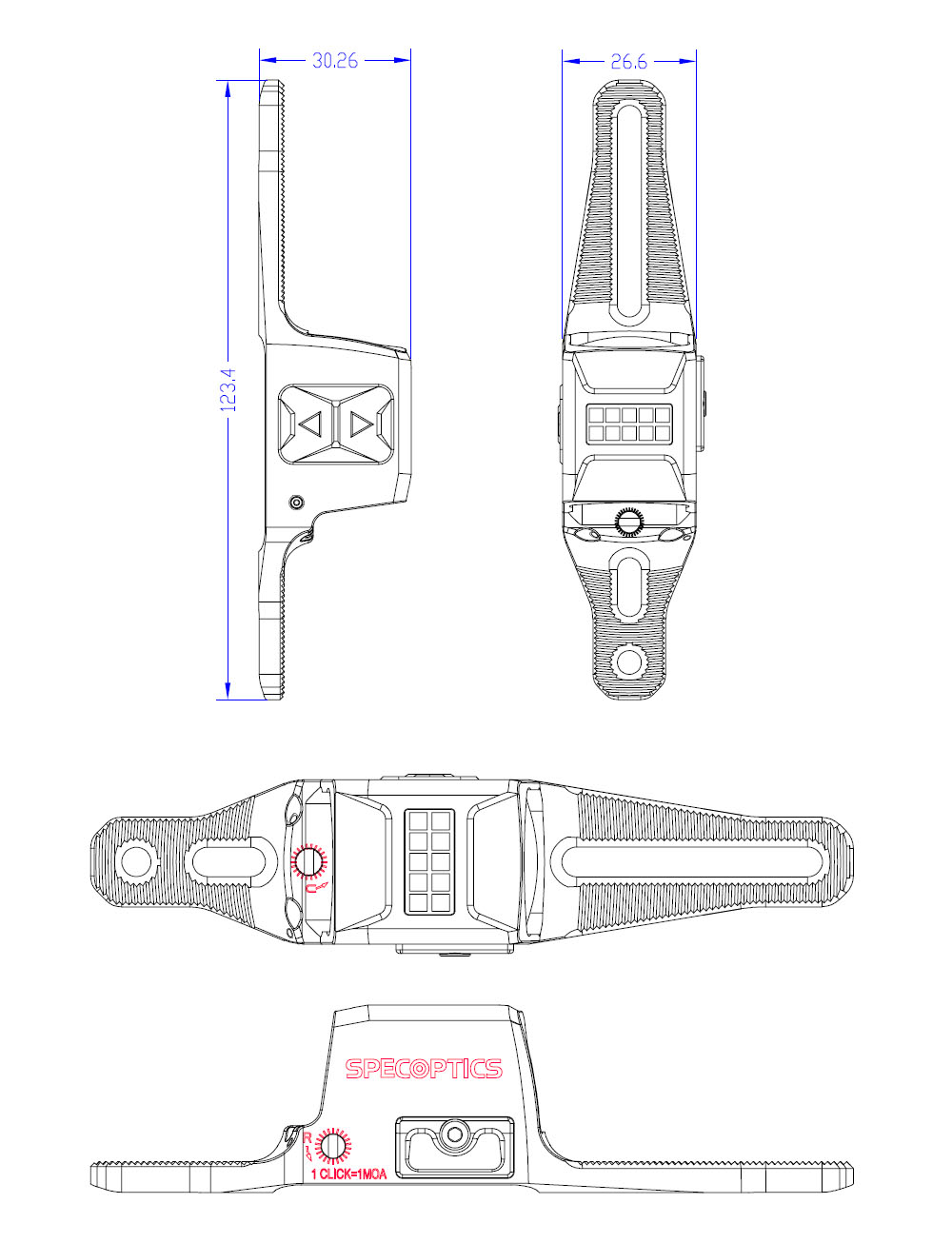 Kullanım ergonomisi ayrıntıda gizli: Parlaklık düğmeleri koruyucu plakaya gömülüdür ve eldivenle kullanımda bile rahat yönetilir. Düğmelerin üzerinde/altında yer alan dokunsal işaretler, karanlıkta “hissederek” doğru tuşu bulmanıza yardım eder. Sıfırlama tarafında gömülü rüzgâr/yükseklik vidalarıyla MOA mantığında hassas ayar yapılabilir. Paralaks-sız yapı, pratikte daha tutarlı bir nişan hissi sunar.