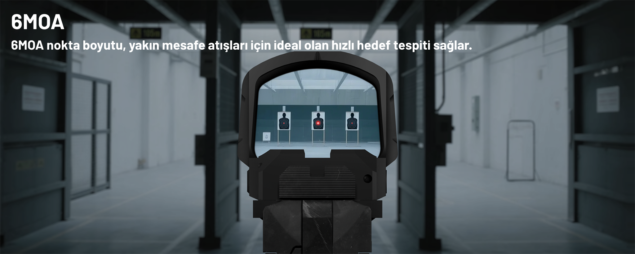 6MOA kırmızı nokta, yakın mesafede hızlı hedefe geçişi sağlar.