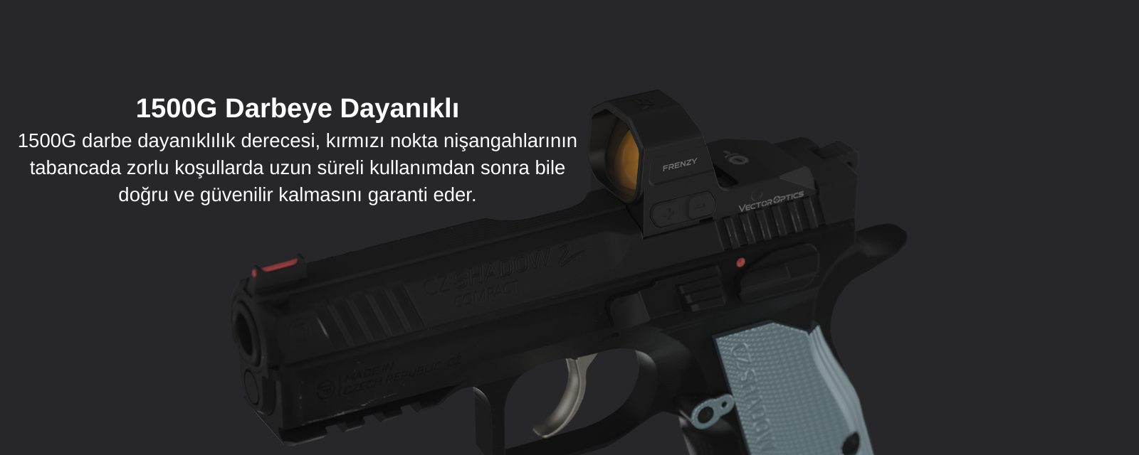 Gövde malzemesi 7075-T6 alüminyum alaşım olarak belirtilmiştir; bu, tabanca üzerinde uzun süreli kullanımda darbe/taşıma etkilerine karşı daha güvenli bir yapı hedefler.