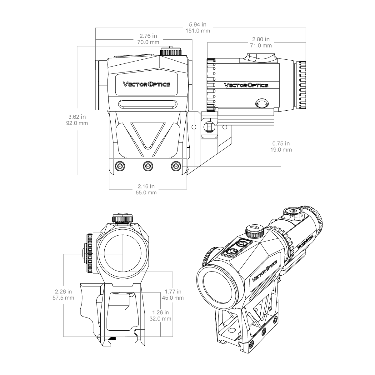 Vector Optics Scrapper 1x25 MRT Red Dot & Paragon 3x Magnifier Entegre Tek Parça Picatinny Montaj Set