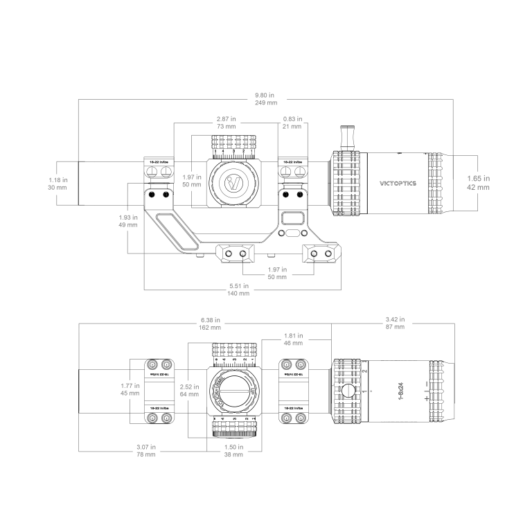 Set; S6 1-6×24 LPVO SFP tüfek dürbünü ve tek parça Picatinny AR montaj ile birlikte gelir.Montajın 49 mm (1.93 inç) merkez yüksekliği, AR platformlarında baş–göz hizasını daha doğal hale getirerek hızlı nişan almayı destekler.
