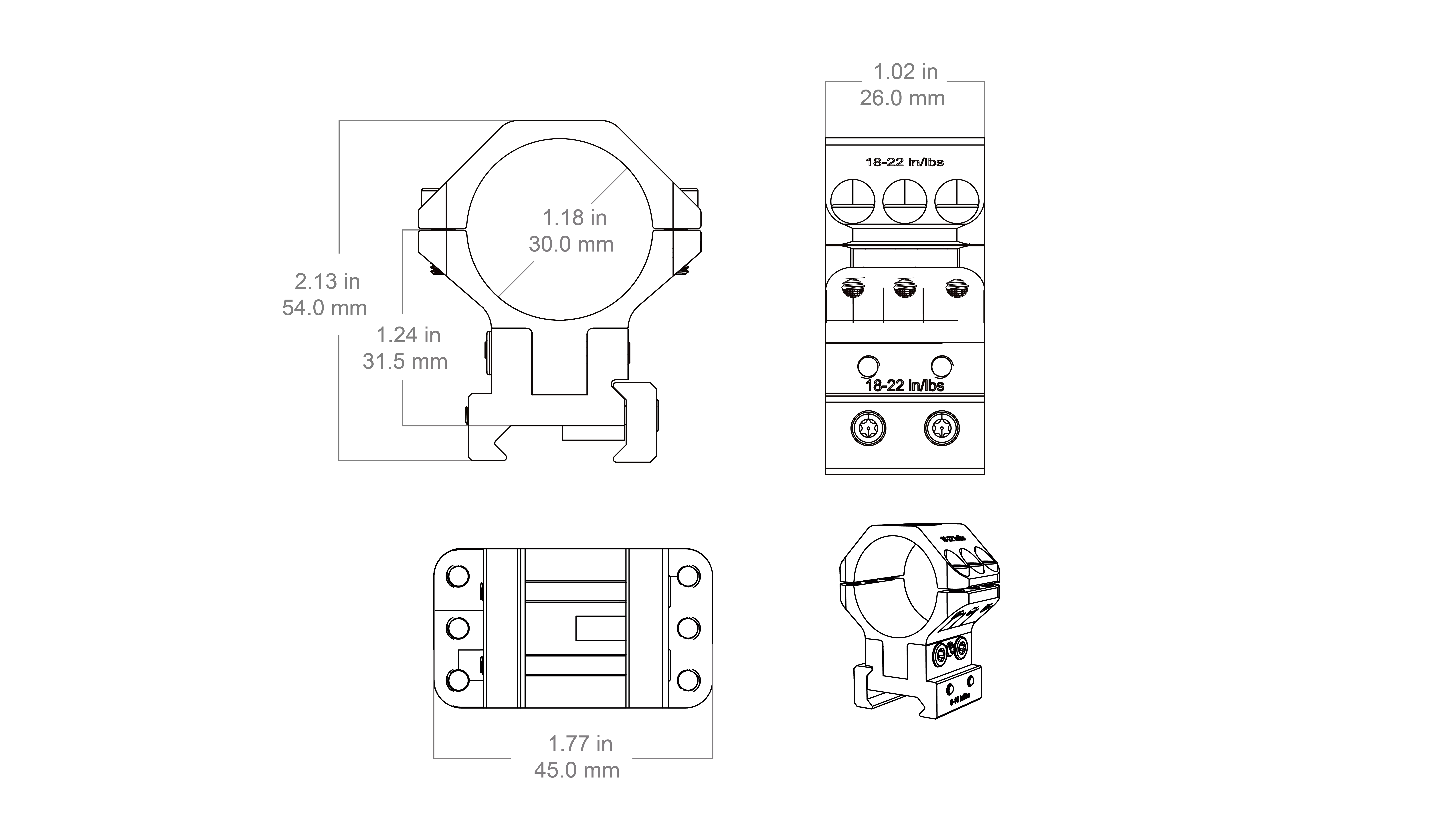 32–38 mm aralığında ayarlanabilen merkez yüksekliği, farklı platformlar ve atış mesafeleri için esneklik sunar. Bu halkalar, 30 mm tüp çapına sahip dürbünlerle ve 56 mm’ye kadar objektif çapı bulunan optiklerle uyumludur.